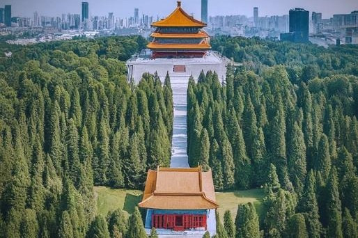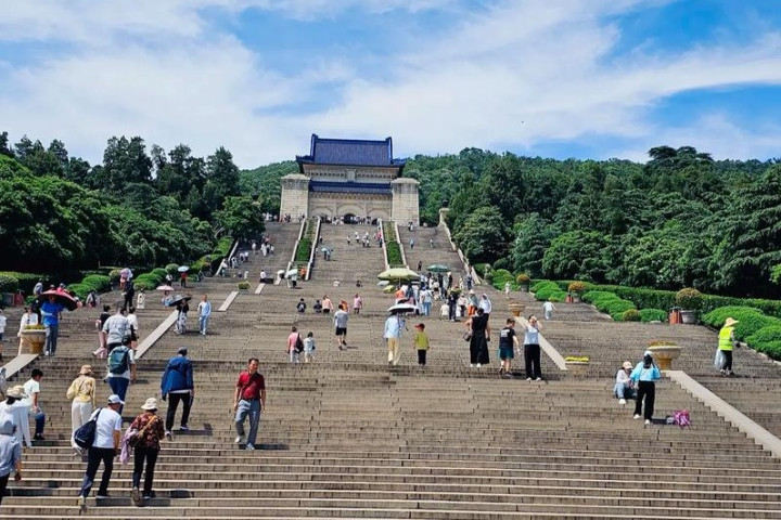 中山陵底下的广场一侧,张念念北和孙女张盼盼触景伤怀,自然而然地含泪欲唱。