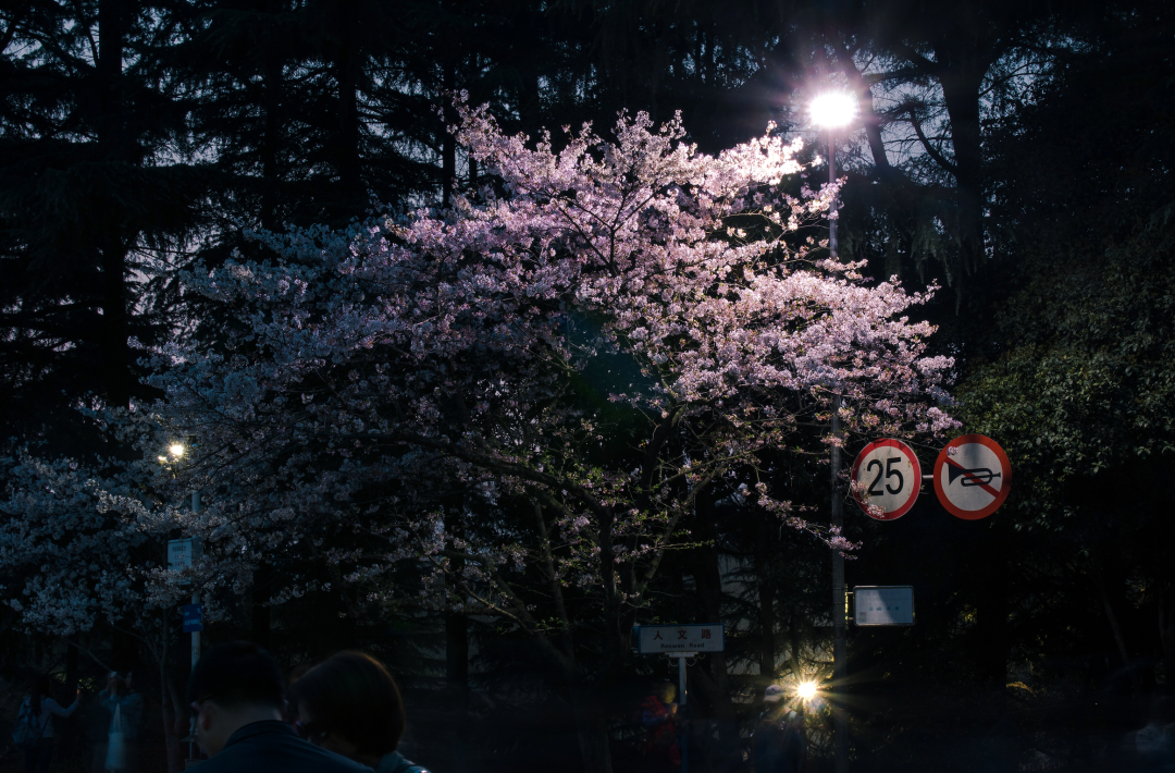 你还可以看夜樱,天然武大莫得精良的夜樱行径,但住在校内,晚上在校园里分袂,街灯下的樱花别有一番仪态。