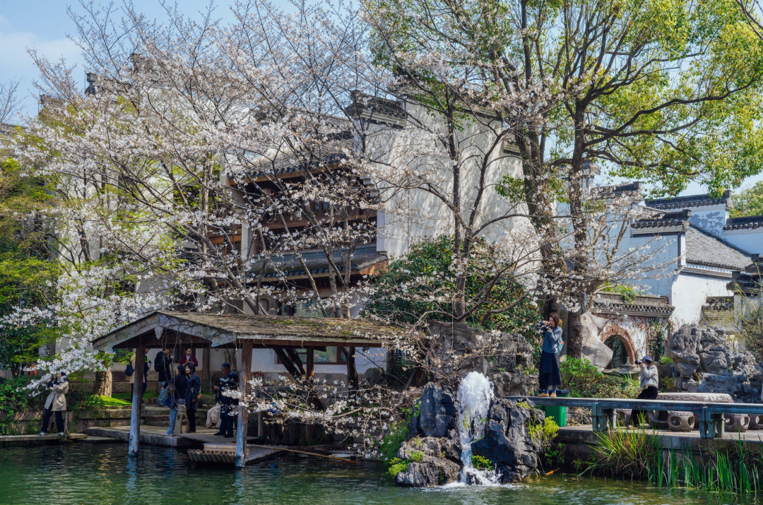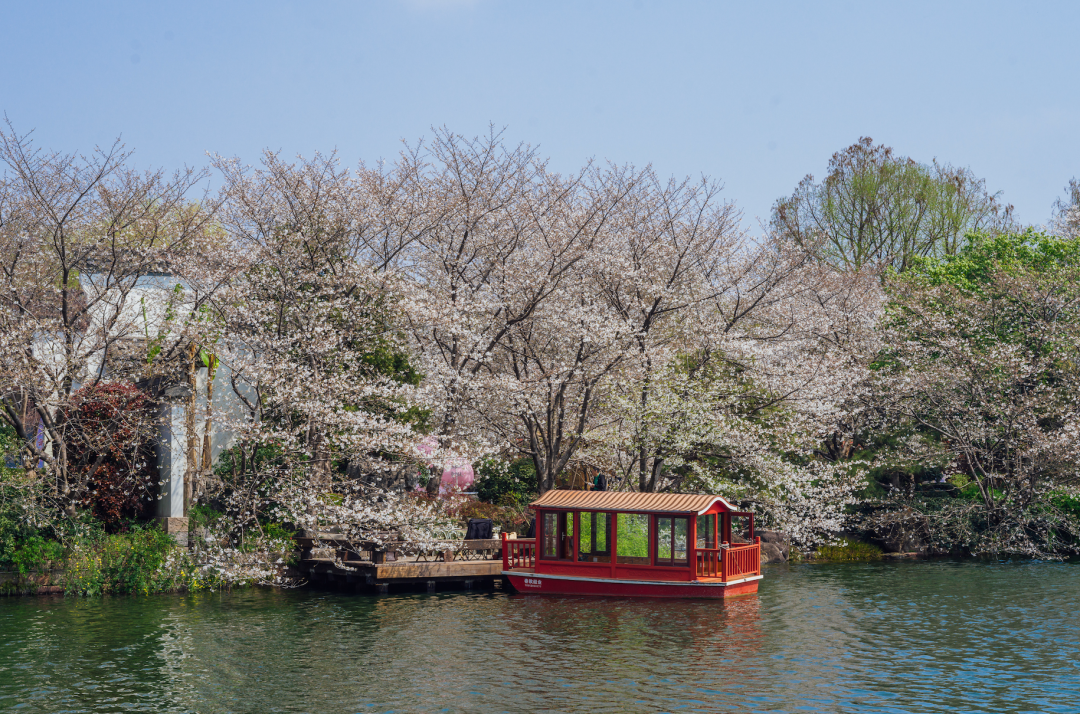 云树帆影是那种小桥活水、典型的江南景不雅,这里的樱花也很聚集,风整个,樱花花瓣飘落在水面上,终点唯好意思。