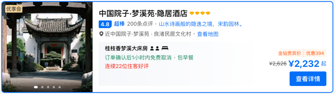 日常梦溪苑·隐居酒店咱们卖过999两晚的,但樱花季的时刻它们家会涨到2000+一晚。
