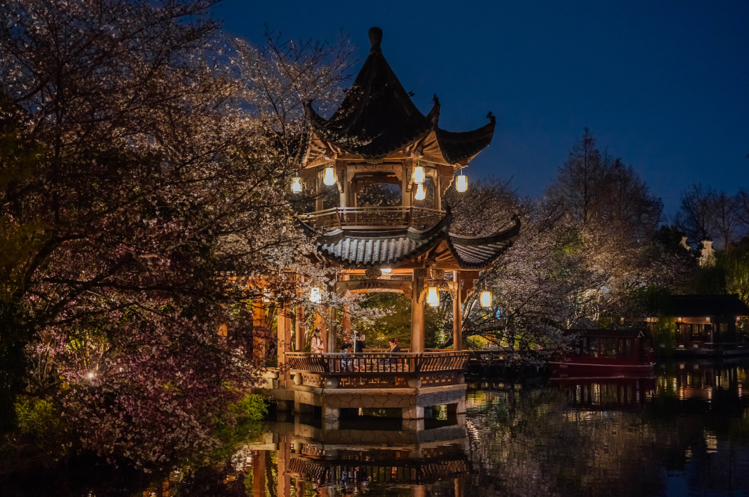 鼋头渚日间是经典,晚上是绝好意思。只好住在内部,才调一次性把夜樱看到爽。