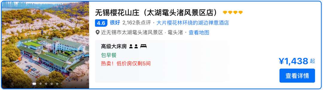 樱花季无锡樱花山庄的房价在1400+一晚。