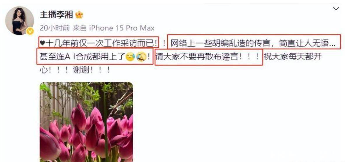 这几天,濒临握住扩大的公论,李湘径直领受了冷处理的形态。