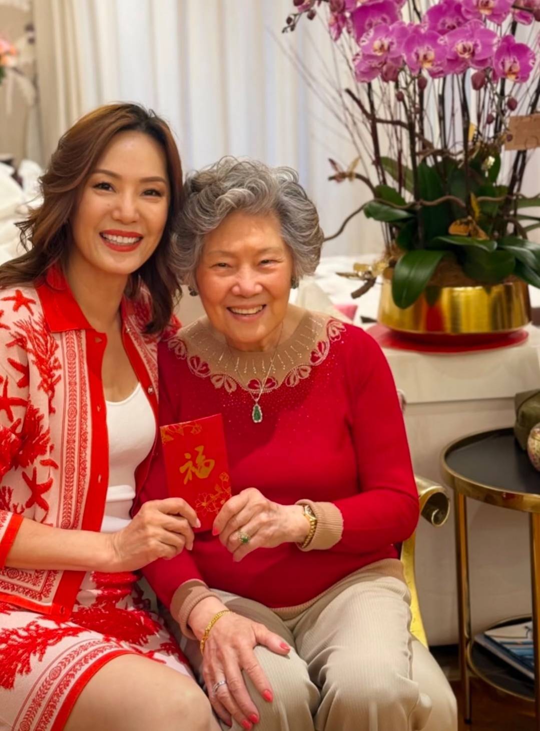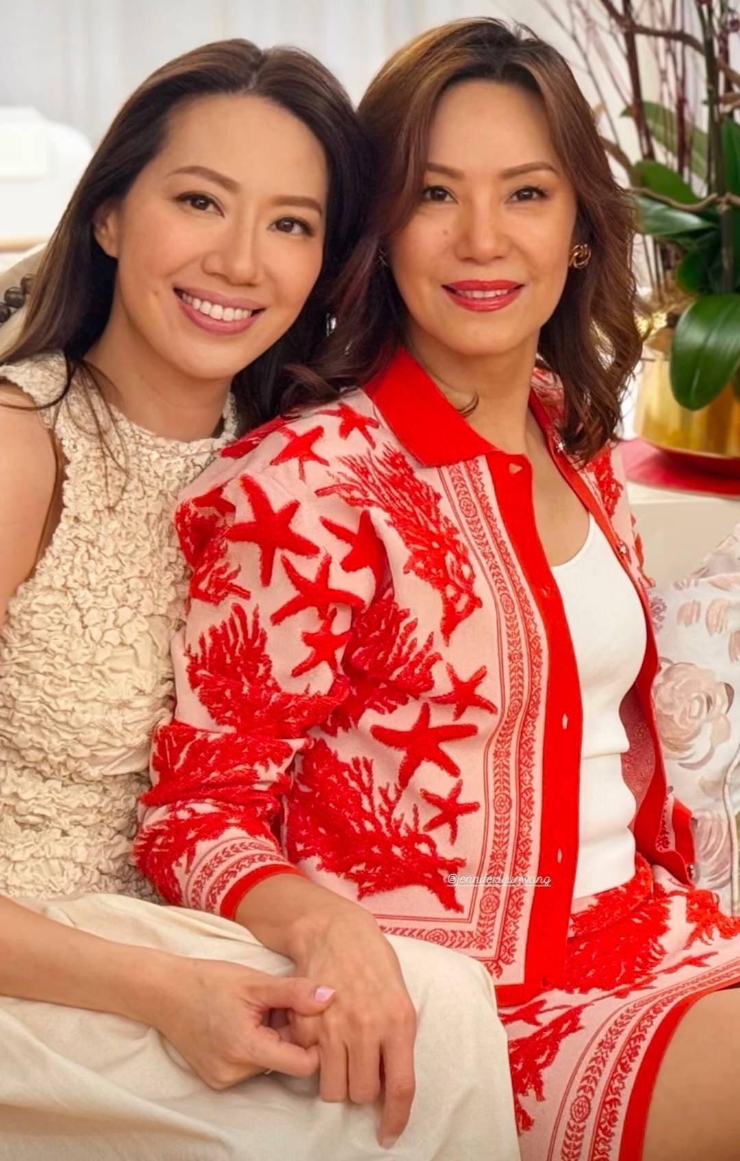 汪徐莉君的姆妈也冻龄有术。天然满头银发,但精气神透澈,孤立孤身一人打扮优雅,一脸福相,气质很好。母女俩同框,很暖心,嗅以为回两东谈主相处得很好。