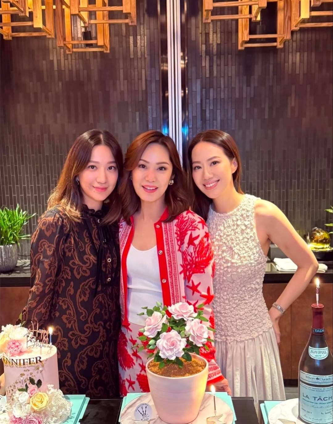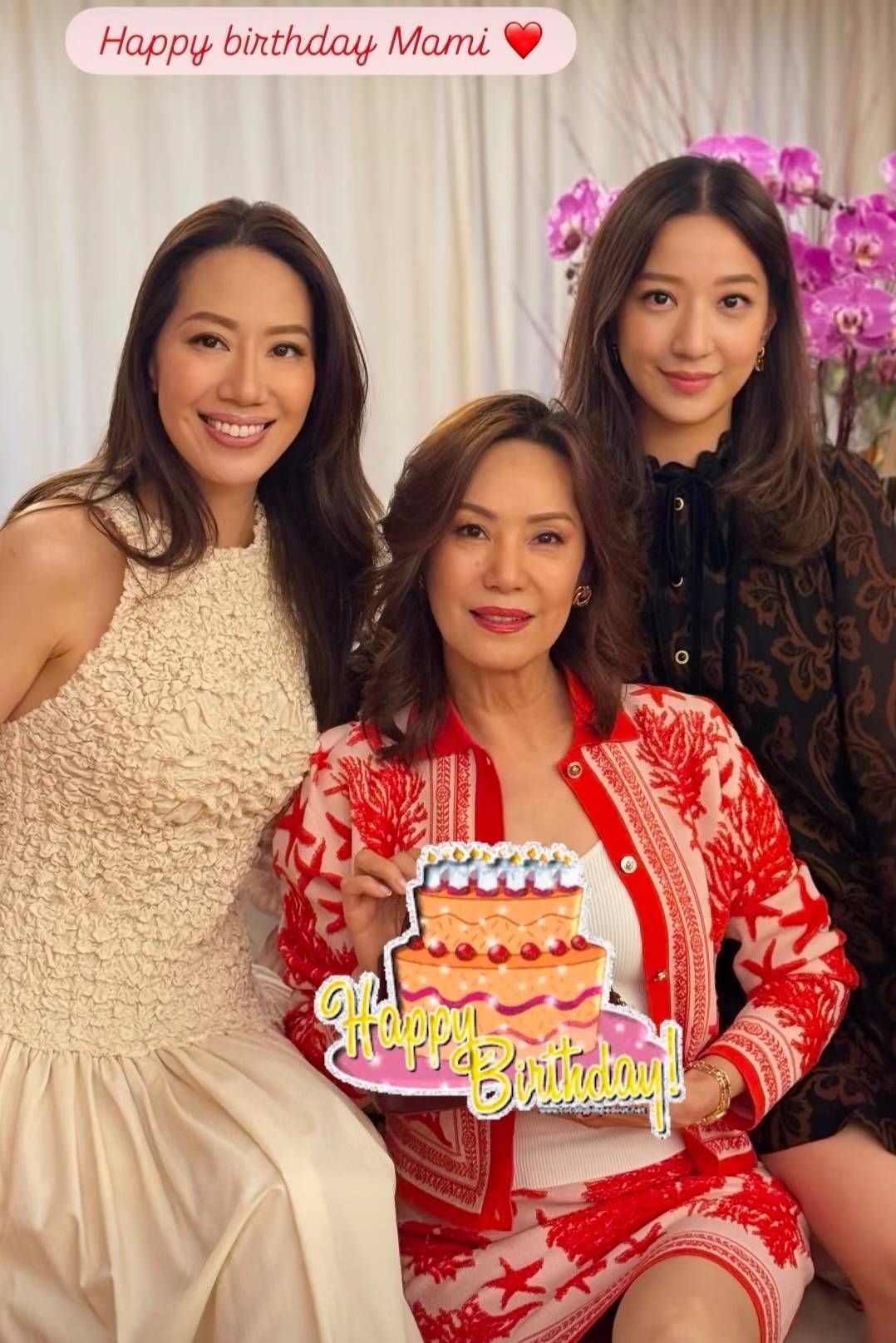 她们母女仨同框,汪徐莉君齐是在中间的位置。有一张合照里,汪诗诗坐在姆妈的右边,露齿而笑;汪圆圆坐在姆妈的左边,抿嘴一笑。值得贵重的是,汪徐莉君手里捧着寿辰礼物,但可能是思要低调,是以放了一个假蛋糕的贴纸遮住了。