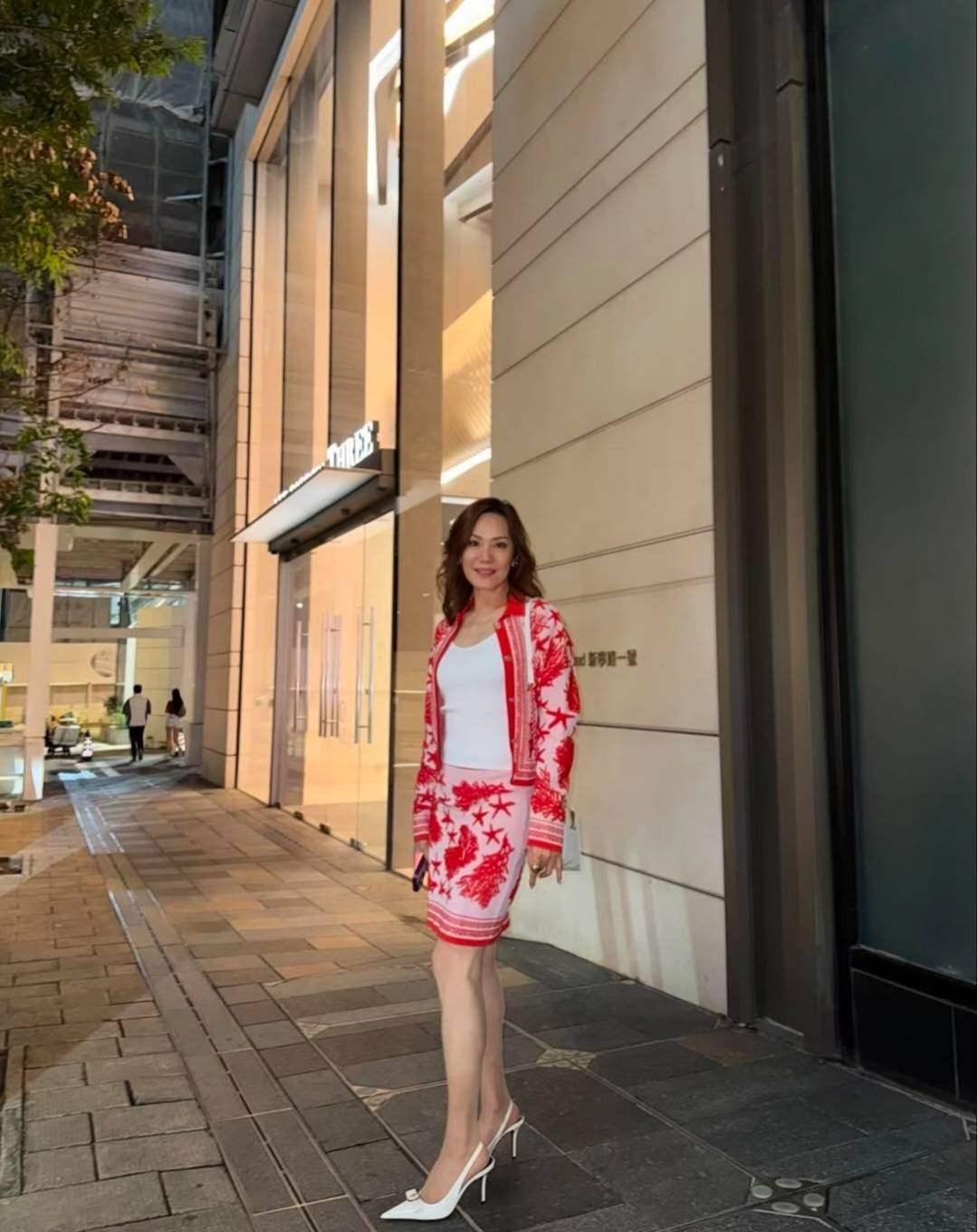 寿星汪徐莉君一头鬈发披肩,白色上衣,搭配一套粉红色套装,脚穿白色高跟鞋,躯壳高挑,长相大气,整个东谈主看起来翠绕珠围。