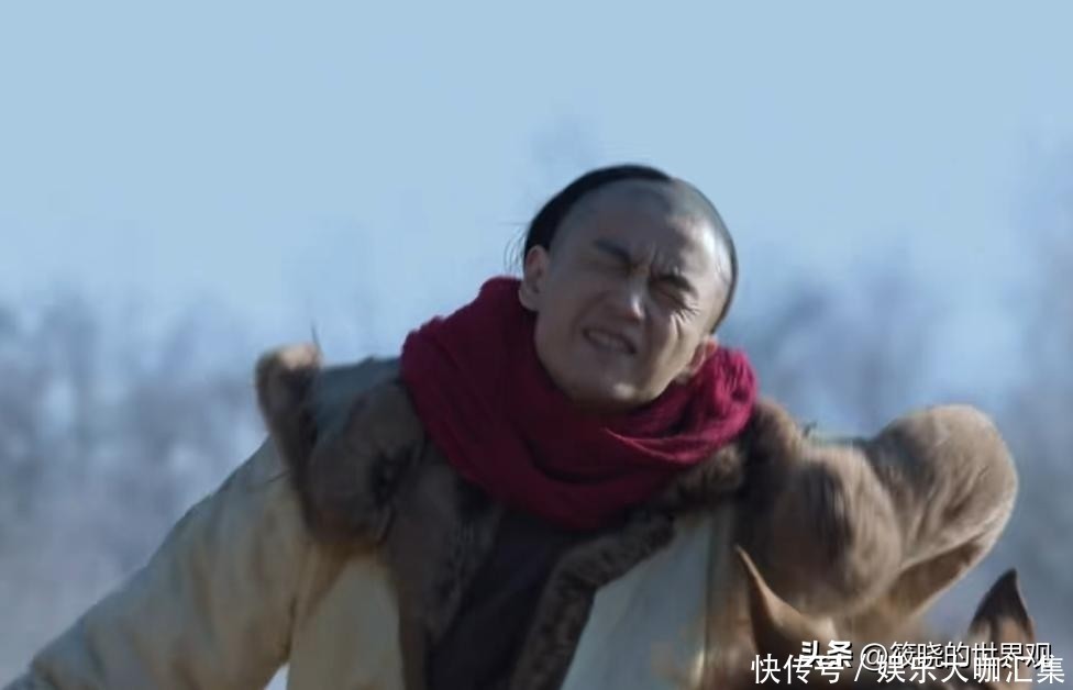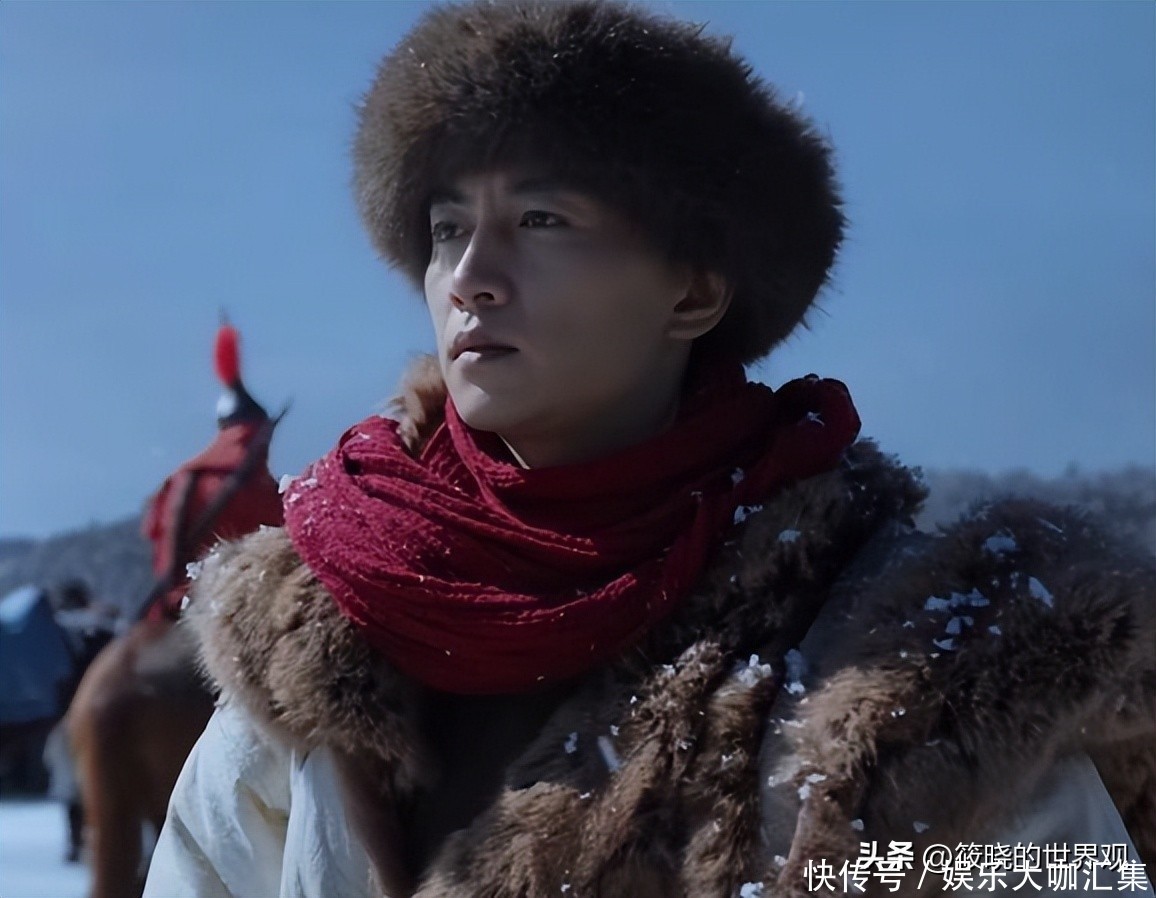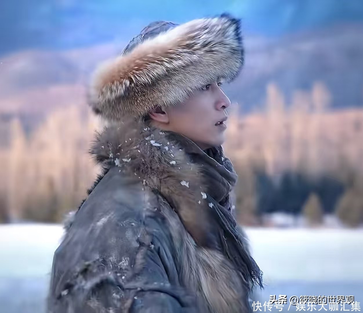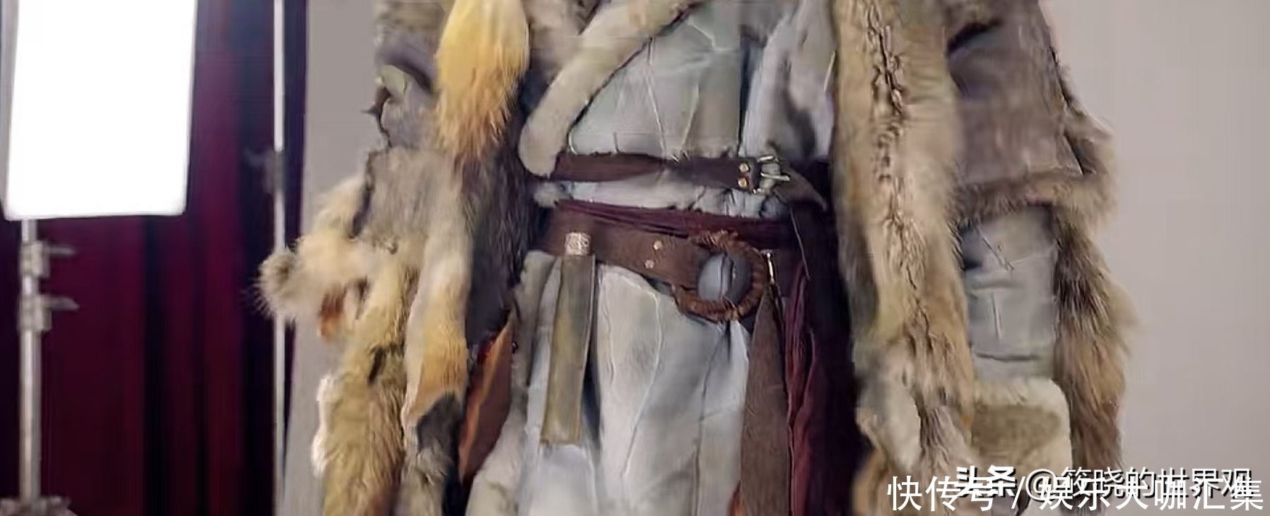 剧中变装身穿粗布棉袍,外披动物毛皮,腰间束以踏实皮带,合座作风紧实御寒。