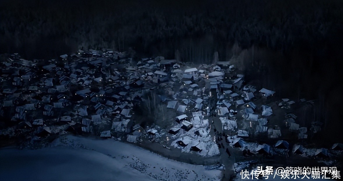 镜头渐渐拉升,整条黑龙江宛如银带迂曲,白雪遮盖的田园之上,一连串移动的小斑点勾画降死活追赶的画面。