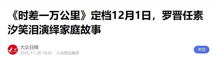 部分参考文件:大家日报|《《时差一万公里》定档12月1日,罗晋任素汐笑泪演绎家庭故事》