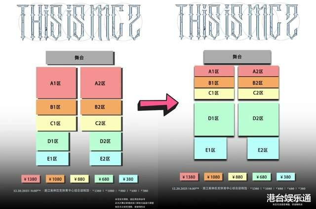 此外,研究到即使对剩余高价票进行打折,销售依然面对贫乏,主理方进一步作念出了临时退换,他们将原先联想的高价票区域进行了大鸿沟缩减,把腾退出来的宝贵空间再行划入中低票价区域对外发售。这么一来,尚未买票的粉丝不错用很实惠的价钱买到位置更靠前、视线更好的门票。