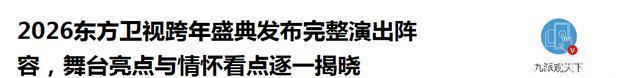 江苏卫视的“黑马解围” 2026年跨年最大的惊喜来自江苏卫视。 在顶流当谈的时期,他们选拔了一条看似“冒险”的谈路。 以实力派歌手为骨架,用音乐自己语言。