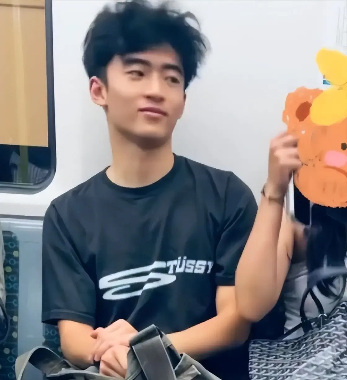 早岑岭的地铁里,Lucas身着孤苦玄色短袖T恤搭配牛仔裤,显得纯粹利落。