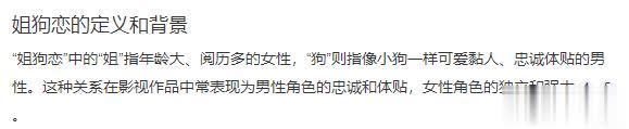 姐狗天花板全称应该叫“姐狗恋的天花板”,据了解姐狗恋是个新名词,指在一段恋情中男生比女生年岁小好多,恋爱经由中男生对女生终点诚意怜惜。