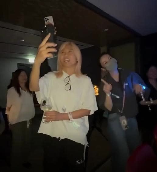 她双手摆出“终点6+1”手势,身体随着音乐律动,工夫她还摆出飘舞的舞姿,以至一度单腿跳,终点俏皮可人,诚然戴着口罩但如故能看出她很兴盛,