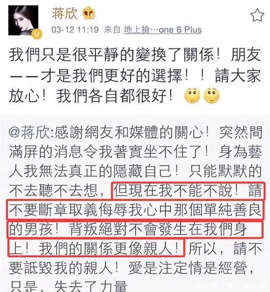 两东说念主分开后,外头对于这段情感的说法挺多,大伙王人传叶祖新抱歉蒋欣。