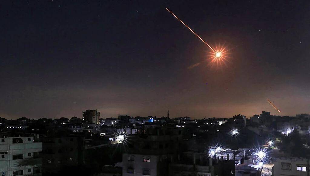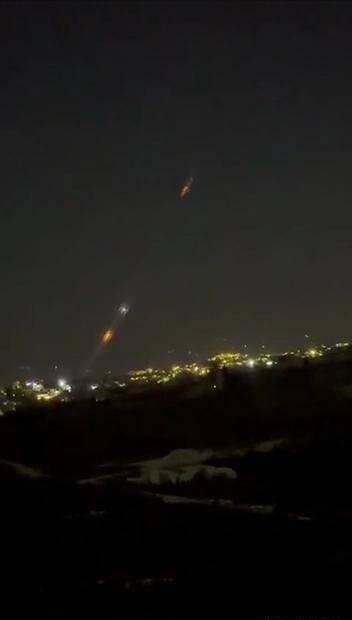 以军“铁穹”阻难竹篱能火箭弹短暂(视频画面截图)