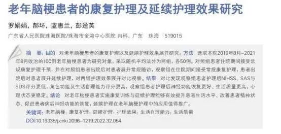 [1]罗娟娟.老年脑梗患者的康复照顾及络续照顾恶果研讨[J].智谋健康,2022